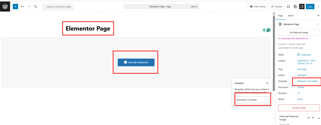 - Click the Edit with Elementor button at the top of the editor to launch the Elementor interface.