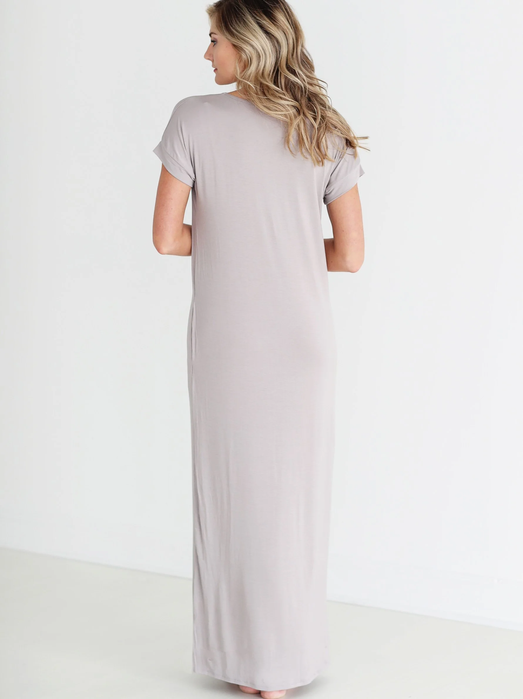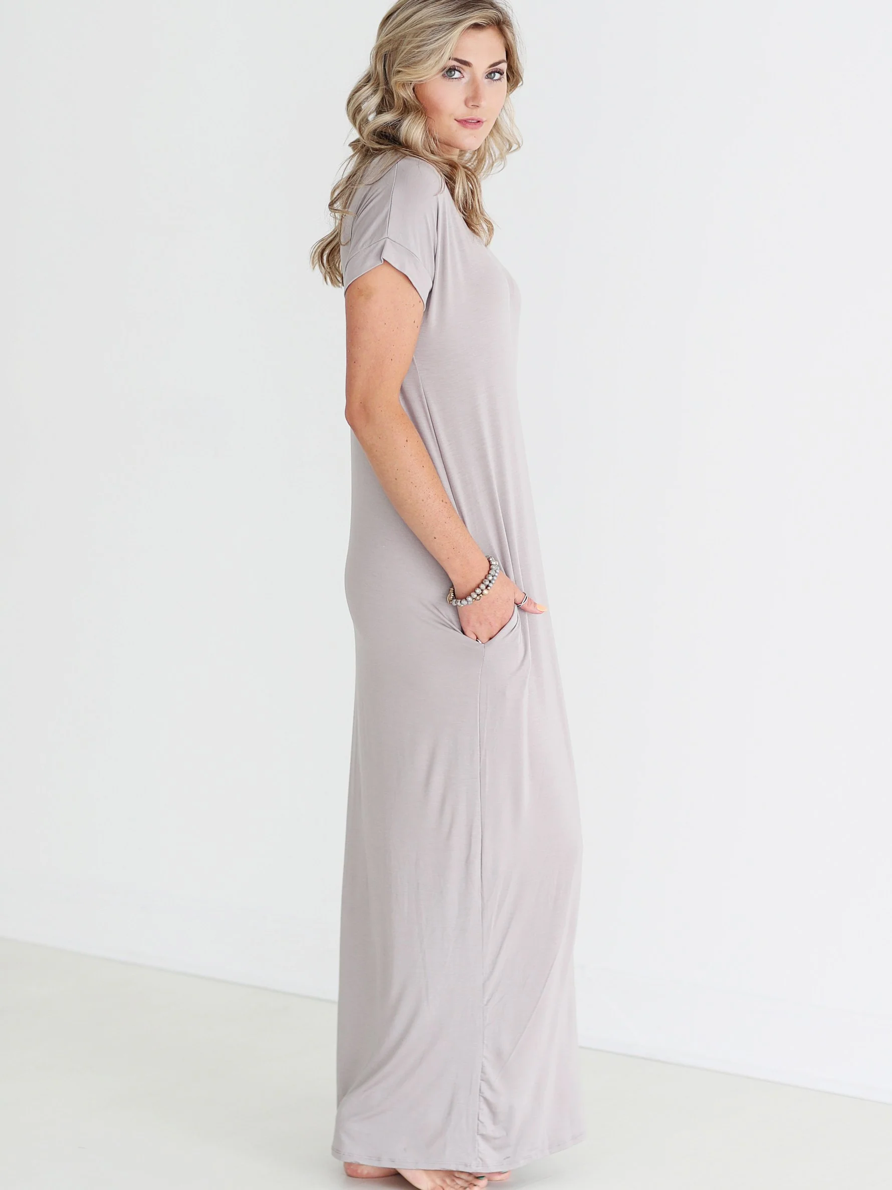 Sleek and simple, this Chelsea gray DLMN maxi dress features a straight cut and dolman sleeves for timeless, all-day elegance.